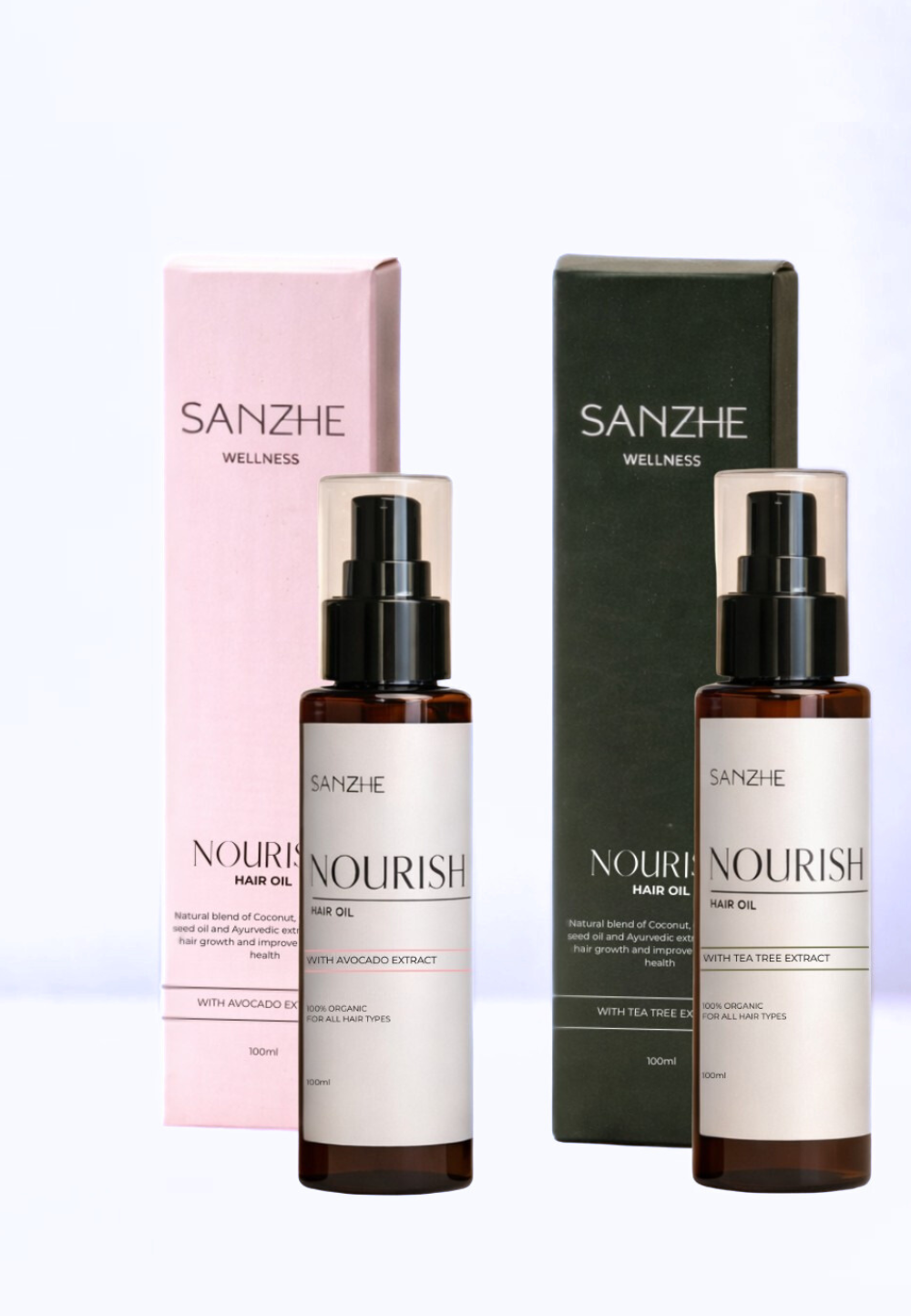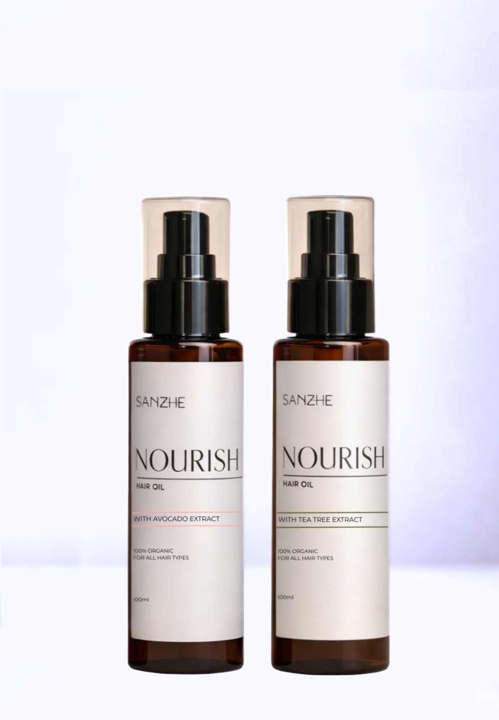 Bundle Contents: Nourish Hair Oil with Tee Tree Extract, Nourish Hair Oil with Avocado Extract