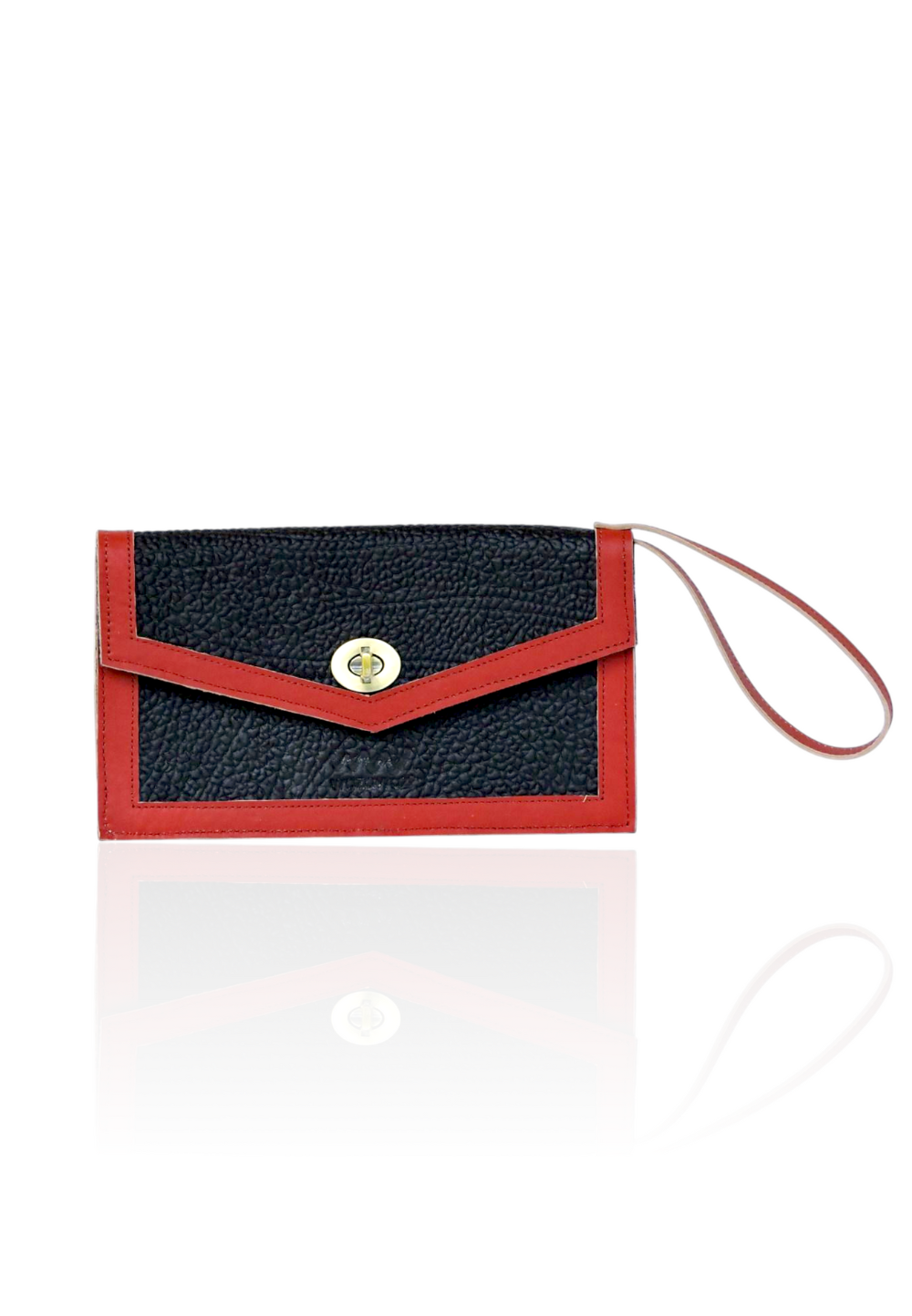 This stylish two-tone clutch is perfect for days when you want to travel light but still look put together. It features a textured black finish with bold red edges and a secure turn-lock to keep your essentials safe. The wrist strap makes it easy to carry, whether you’re heading out for errands, work, or a casual outing. Simple, elegant, and practical.