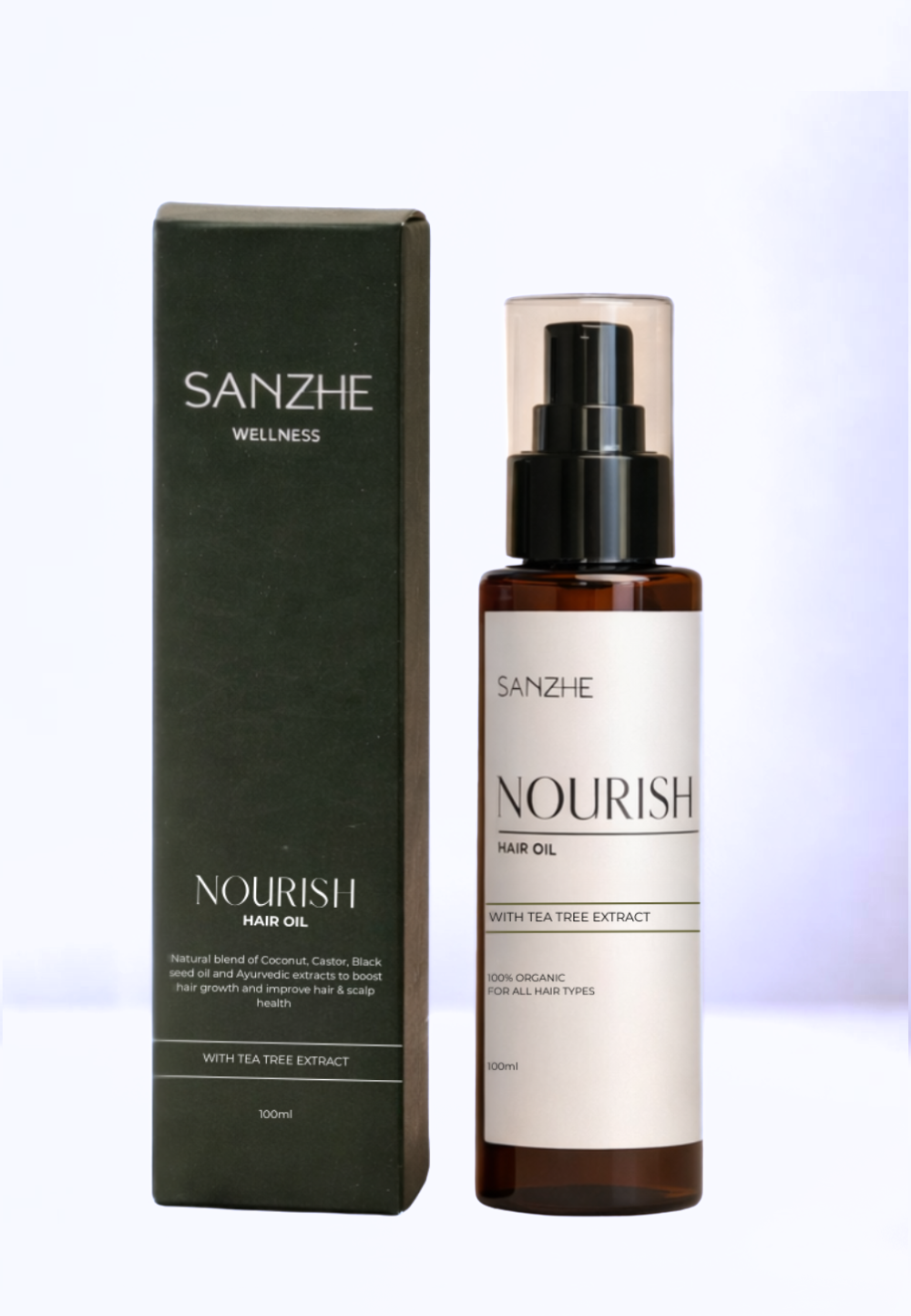 With formulas passed down generations, and sourced from Mother Earth, SANZHE hair oils are all-natural, Vegan, Cruelty-Free, and Purposeful, taking a holistic approach to hair care. Our tried and tested blend is formulated to control hair loss, promote hair regrowth, hydrate and replenish your scalp, resulting in Healthier, Shinier, and Nourished hair. Nourish with Tea tree extract is ideal for dry hair, flaky scalp, or dandruff-prone hair.